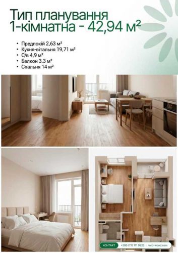 Площа 42,94 кв.м продумане, сучасне планування, де кожен метр працює на ваш комфорт.
