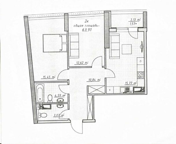 О квартире: 63/28/15м2