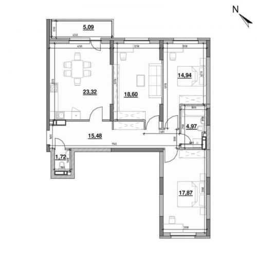 3-кімнатна квартира, Повітряних Сил просп. (Повітрофлотський), 56, Соломянський район. Метраж 101/54/24, поверховість 17/24.