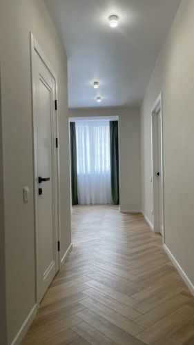Дизайнерський євроремонт виконаний у сучасній, спокійній стилістиці. Якісний кварцвініл постелений у коридорі, кухні, кімнаті та на лоджії. У санвузлі сучасна плитка, якісна сантехніка Grohe, продумане освітлення. Електрика виконана професійно, без тимчасових рішень. Тут усе зроблено один раз і зроблено правильно.