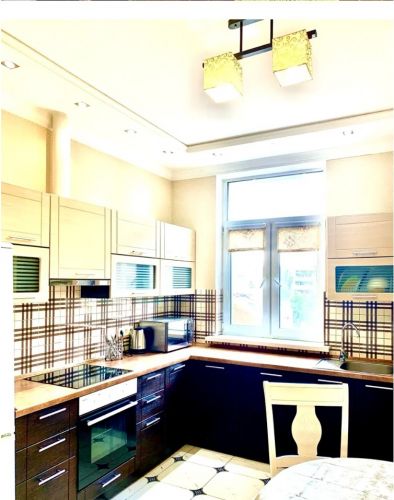 О квартире: 70/30/9м2, дизайнерский ремонт, высота потолков 3.0м, комнаты раздельные, с/у совмещенный, на полу ламинат, окна во двор, интернет, TV, СМА, холодильник, мебель, кухонная мебель