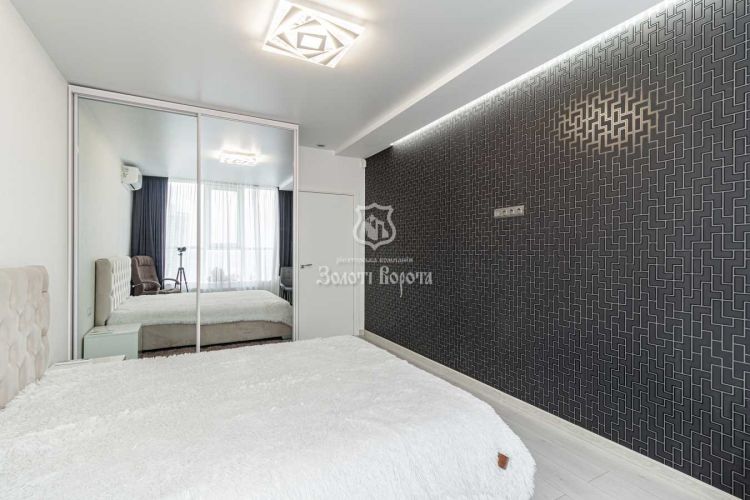 У квартирі виконано стильний дизайнерський ремонт у світлих тонах, який створює відчуття візуального простору та затишку. В інтер’єрі використано преміальні матеріали: плитка під мармур, декоративні покриття стін та якісний текстиль.