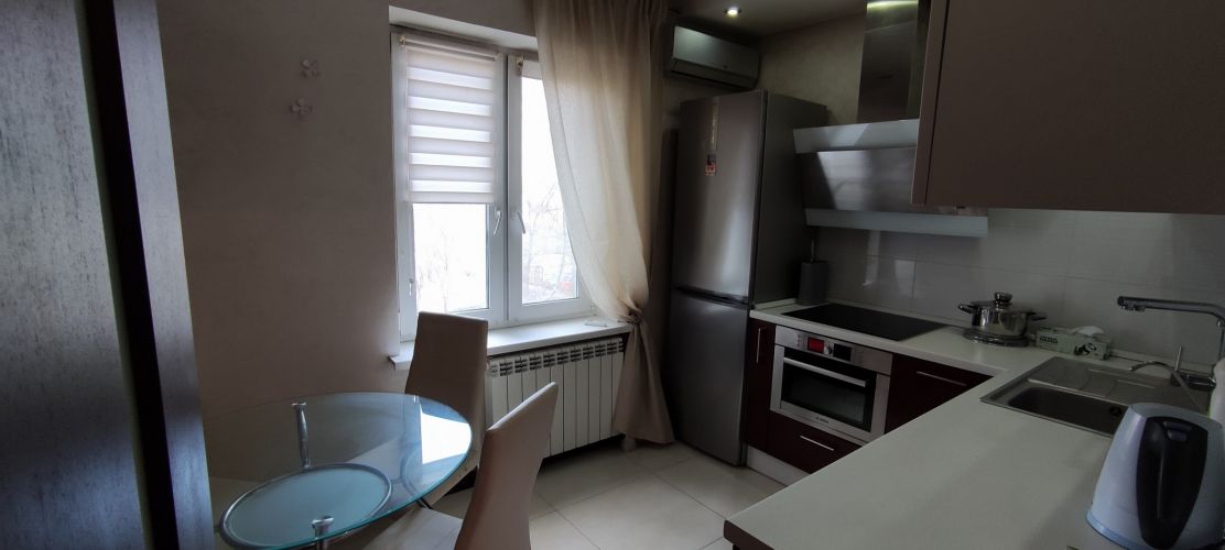О квартире: 75/43/9м2, евроремонт, высота потолков 2.7м, комнаты раздельные, с/у раздельный, на полу доска, лоджия, двусторонняя, интернет, TV, СМА, холодильник, мебель, кухонная мебель