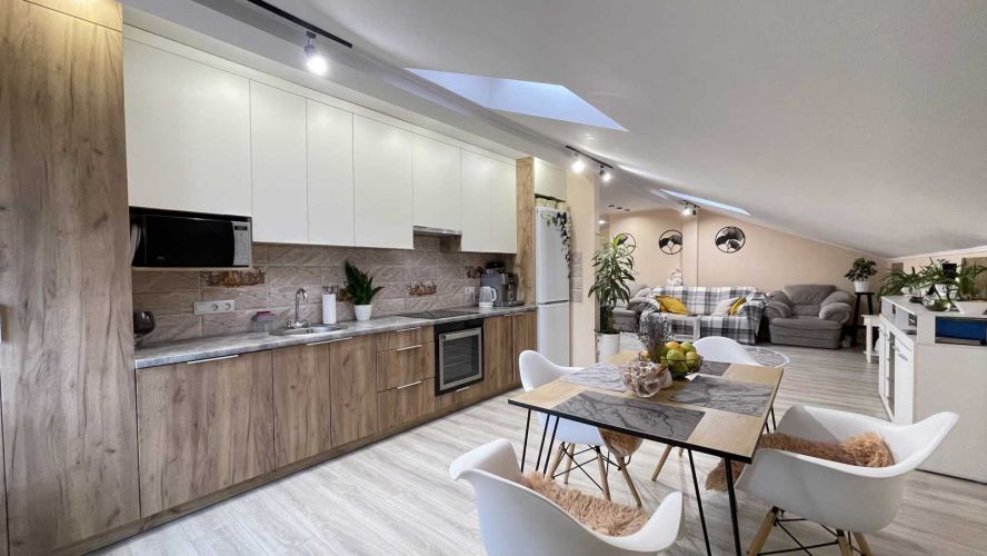 #128715; Квартира складається з двох кімнат та просторої кухні-вітальні на мансардному поверсі. Вам не доведеться турбуватися про меблі, оскільки вона вже оснащена вмонтованою кухнею, електроплитою, духовою шафою та холодильником.