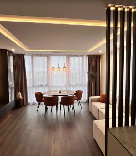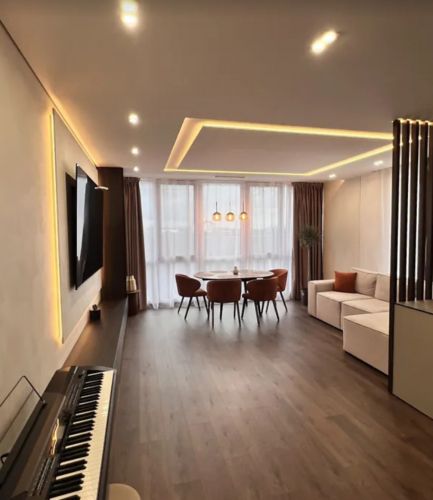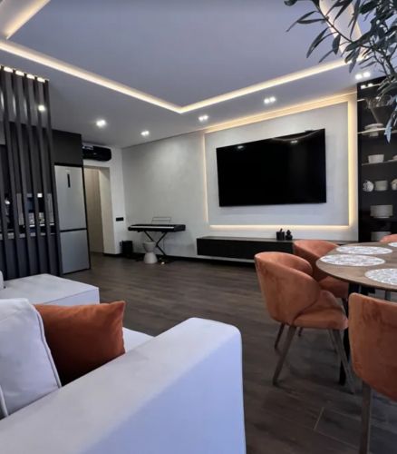 Сучасний будинок, квартира розташована на зручному 4 поверсі цегляного будинку. Загальна площа 74 кв.м, велика кухня-студія та дві окремі кімнати. У квартирі зроблено продуманий дизайнерський ремонт. Панорамні вікна, тепла підлога по всій квартирі.