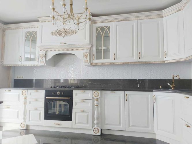 Прекрасна світла, простора 2-х рівнева квартира з шикарними сходами рожево-нюдового італійського мармуру в ансамблі з мармуровими панелями на стінах та мармуровими підвіконнями вигідно підкреслені італійською та австрійською декоративною штукатуркою світлих тонів. Гіпсові ажурні панелі та багети справляють враження легкості та елегантності. Кожна кімната має свою індивідуальність, але не вибивається із загального стилю. При виконанні ремонтних робіт використовувалися лише якісні матеріали, паркетна дошка червоного дерева під воском, мармур, граніт, гіпс, дерево, керамограніт. Мають місце елементи художнього кування та вітражі. Столярні вироби виготовлені з дуба. Вбудована кухня з ясеню зі стільницею з мармуру прикрашає собою простір кухні та поєднану з нею вітальню. Частково мебльована. Встановлено побутову техніку провідних виробників - плита газова, духовка електрична, посудомийна машина, потужна витяжка, холодильник, бойлер, котел. У квартирі встановлені пральна машина, кондиціонери.
