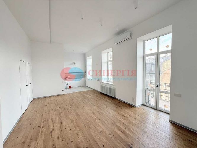 Великий надихаючий простір студіо площею 33 метри, з усіх вікон якого відкривається на зелені схили початку Маріїнського парку, вулицю Інститутська та величний фасад будівлі Національного художнього музею України.