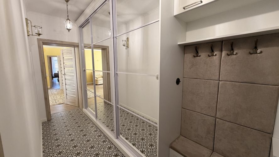 Квартира має зручне планування, що дозволяє максимально ефективно використовувати простір. Внутрішнє оздоблення виконано з якісних матеріалів, що створює затишну атмосферу. Велика кухня стане ідеальним місцем для сімейних вечерів, а простора вітальня забезпечить комфорт для відпочинку. В помешканні є гардеробна де зручно розмістяться всі ваші речі.