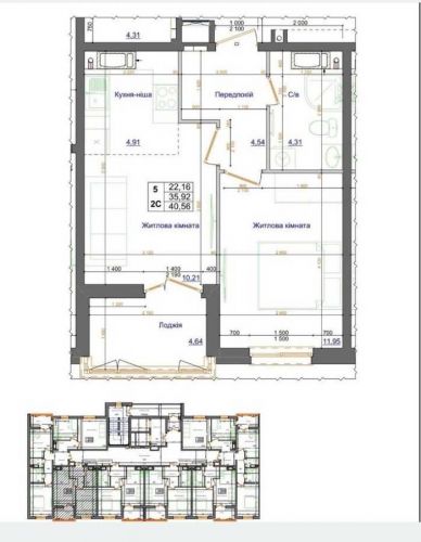 Головною особливістю квартири є вільне планування, яке відкриває широкі можливості для реалізації ваших ідей тут ви зможете створити оселю своєї мрії з нуля. З вікон відкривається приємний вигляд на затишне подвір’я та панораму соснового лісу, що оточує Коцюбинське.