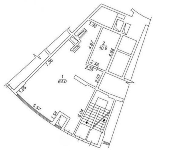 Помещение: 75м2, под чистовую, свободная планировка