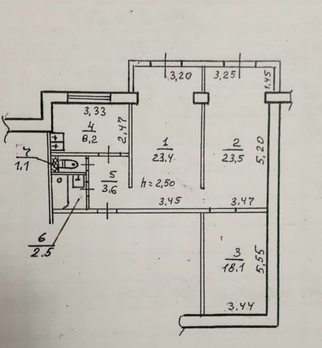Площадь 80м2, 4 комнаты (одна из них под кухню или кабинет), санузел.