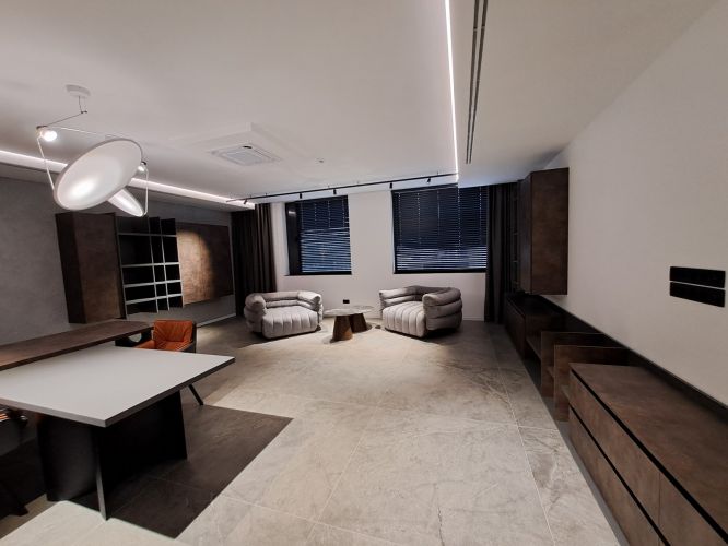 Кожне робоче місце мебльоване якісними дорогими меблями, а для керівників передбачені окремі стильні кабінети з ефектною подачею — справжній рівень преміум.
