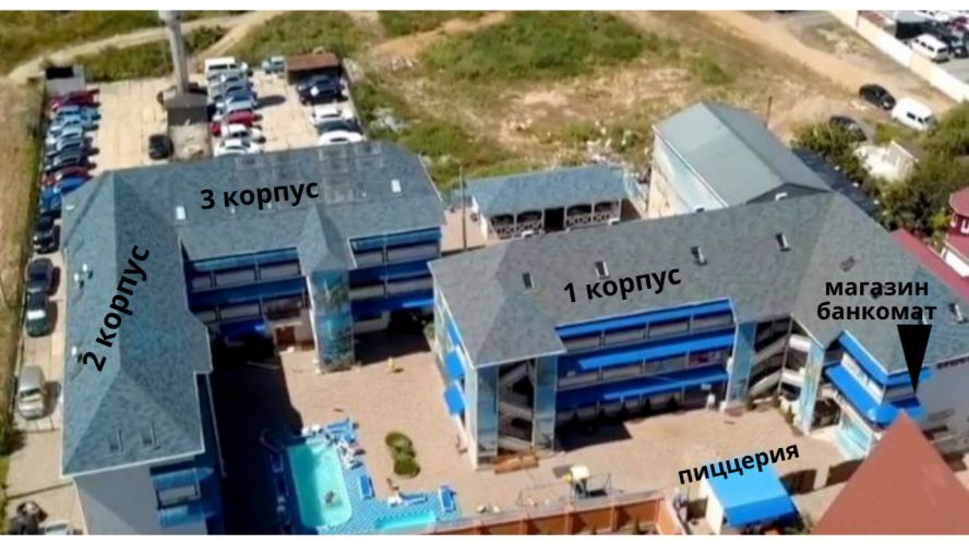 На территории, 3 корпуса , 64 номера со всеми удобствами + корпус для персонала.