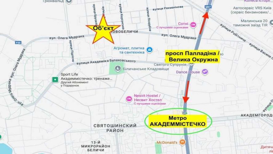 Поруч вул. Булаховського, Наумова, просп. Палладіна, Велика Окружна, б-р Вернадського,