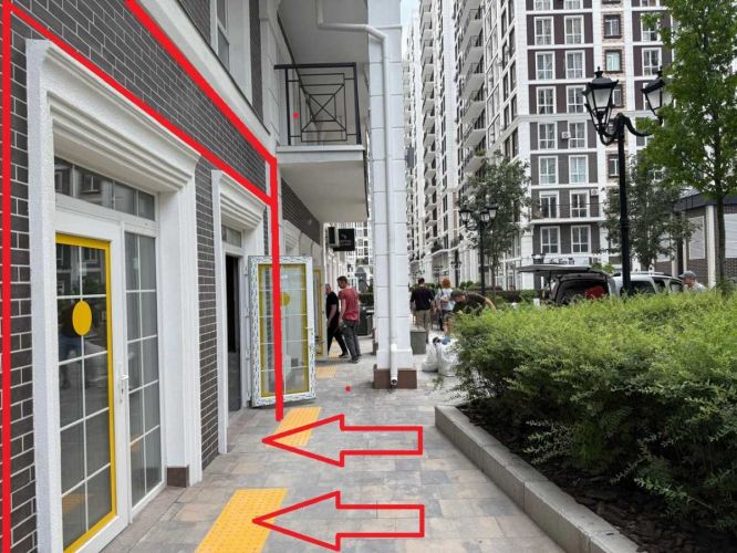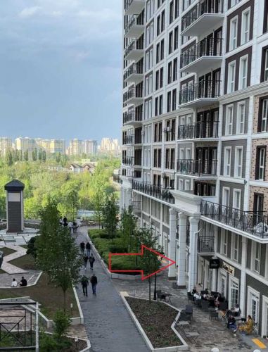 -Нежитлове приміщення 42,3 кв.м, 1-й поверх, висота стелі Н=3,5 метри, два входи, місце під велику вивіску, електро-потужність 12 кВт. Лічильники на тепло воду та електрику. Вивіска дивиться на видовий майданчик, та на парадні входи будинку "Лінкольн".