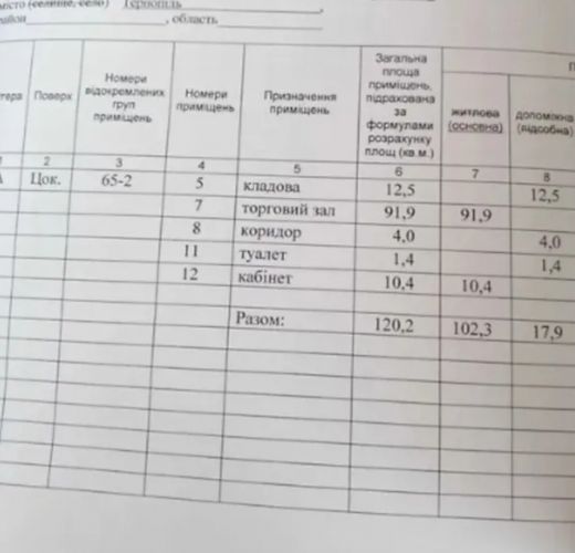 Загальна площа 120 кв.м, великий зал, кабінет, кладова та санвузол. Приміщення в хорошому стані, готове до використання.