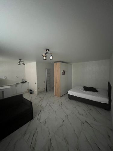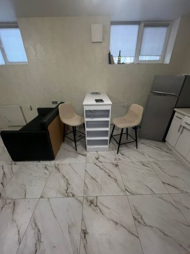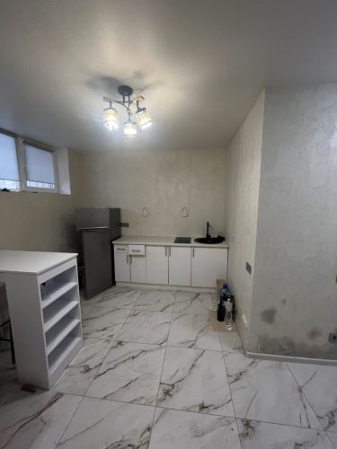 Зроблений ремонт для можливого проживання як в 1 кім. квартирі: санвузол сумісний з душ-кабіною, кухня відкрита, поли з підігрівом, 2 електробатареї, вай-фай, грати на вікнах, цокольний поверх 9-поверхового нового будинку. Деталі за телефоном.