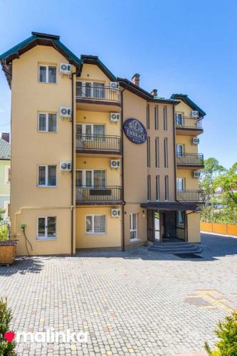 Готель складається з 5 поверхів, один з яких цокольний (нульовий), в якому розміщена кухня, їдальня, дві комірки для зберігання продуктів, санвузол, та приміщення для процедурних сеансів.