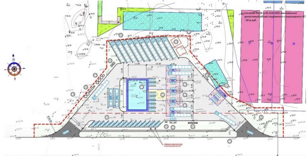 Документы: Заправка (2000) А, навес Б, уборная В, топливные резервуары (5 шт) І-V, пожарный резервуар VІ