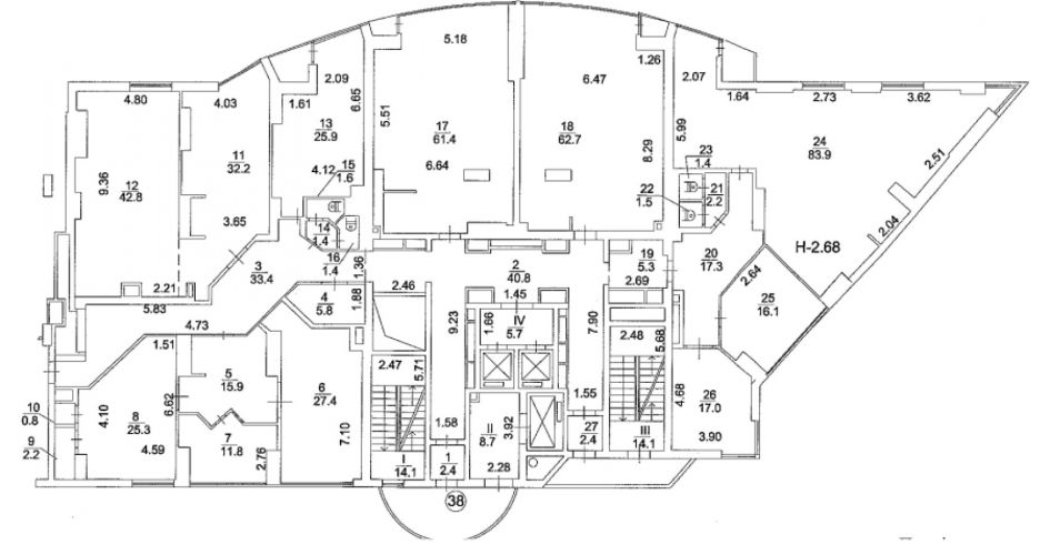 В приміщенні кабінети, опенспейс, техприміщення, кухня, кілька с/в.