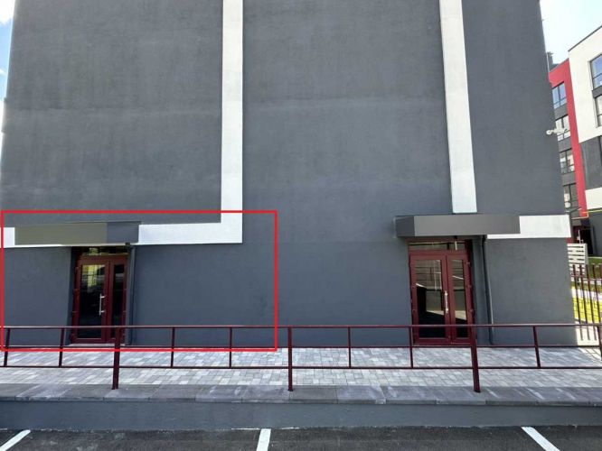 Площа комерційного приміщення становить 90 м2. Розташоване на першому поверсі зданого будинку, має окремий вхід з фасаду будівлі. Приміщення з чорновим оздобленням, встановленими вікнами. Централізована каналізація, електричне опалення + водяна тепла підлога, із черновим ремонтом, інтернет, 4 мокрі точки, введеня е/е 18 кВт (три фази).
