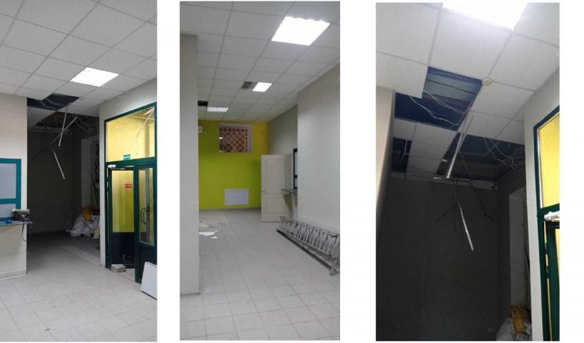 Приміщення має два виходи: центральний та запасний (у двір житлового будинку). Планування приміщення дозволяє використовувати його в якості офісних або торгівельних приміщень. Електропотужність 20,5 кВт. Опалення централізоване, без окремого лічильника. Електропостачання, водопостачання, опалення в наявності. Приміщення обладнане пожежно-тривожною сигналізацією, системою відеоспостереження, кондиціонерами (2 шт), структурованою кабельною системою. Скління пошкоджено внаслідок вибухової хвилі. Власник - юр.особа. Вартість із ПДВ.