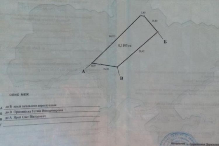 Рівна ділянка трапецевидної форми площею 12 соток.