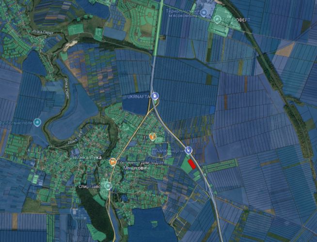 Продається земельна ділянка, що примикає до траси М19 (Тернопіль — Чернівці, Івано-Франківськ — Буковель). Ділянка площею 150 сотих, цільове призначення — для будівництва та обслуговування будівель торгівлі