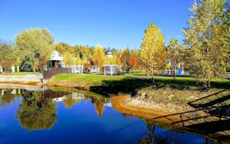 Впорядкована територія, пляж із зоною відпочинку, дитячий майданчик, футбольне поле, поштомат Нової пошти, своя капличка.