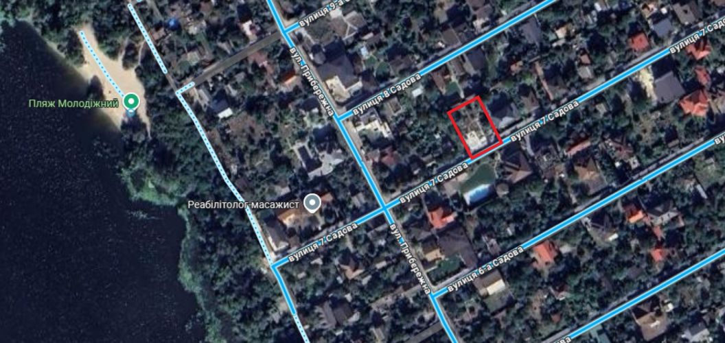 Вулиця веде до Дніпра, поруч пляж, зона відпочинку.