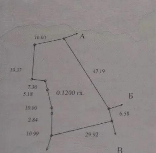 Рівна ділянка вигнутої ворми площею 12 соток.