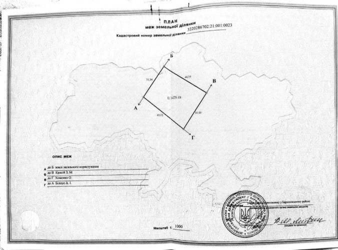 Продаж земельної ділянки 15 соток під житлову забудову. Баришевський район, в село Власовка, вул Космонавтів, 49. Асфальтовані підїзди + 300 метрів добротної грунтовки. В селі є промисловий, продовольчий магазини, Нова пошта, зупинка маршрутки (300м). Неподалік станція приміської електрички. Ділянка рівна, з травяним покровом. Навколо охайні будинки, пітомник рослин, село газіфіковане, люди живуть постійно. Ціна $250 за сотку. Кадастровий номер земельної ділянки: 3220286702:21:001:0023 Комиссия: 2.50%