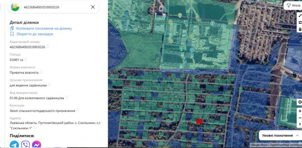 Особливості даної ділянки ділянка знаходиться в поруч житлових комплексів м. Львів по вул. Трускавецька. Дуже перспективний район приватної забудови поруч заселених житлових комплексів. Ділянка в садовому товаристві .Район поступово розбудовується , поруч починають будуватися . Вулиця електрифікована.