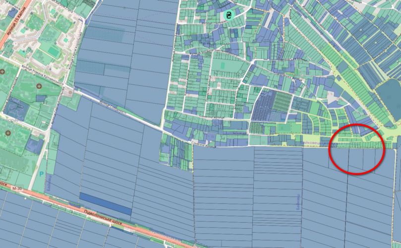 Ділянка розташована поруч із дорогою, навпроти вже збудований житловий будинок, підведені всі необхідні комунікації (світло, газ, вода) є можливість швидкого підключення.